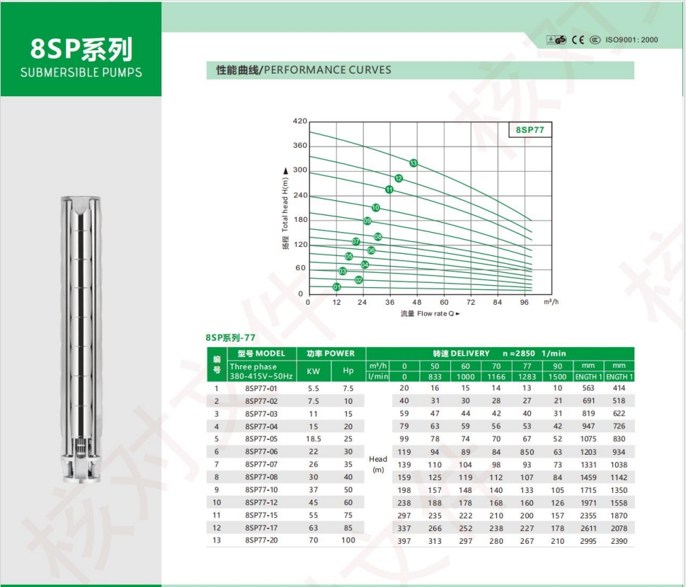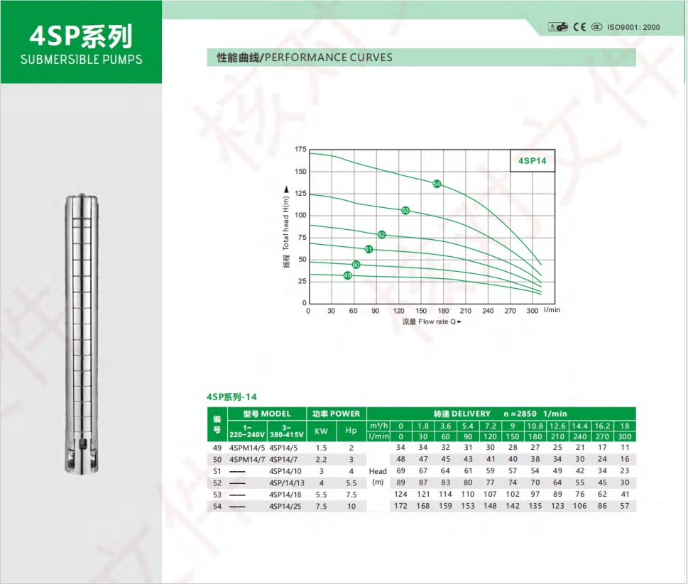 全不鏽鋼深井(jǐng)泵系列/參數